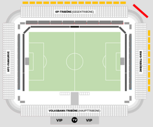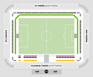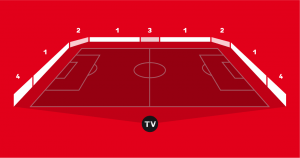 Hinter den letzten Sitzreihen auf den Tribünen gelegen, bietet wir Ihnen mit dem Galeriekranz eine besondere Positionierung im teilweise TV-relevanten Bereich.